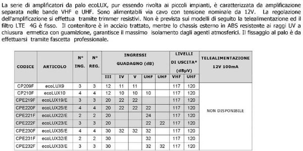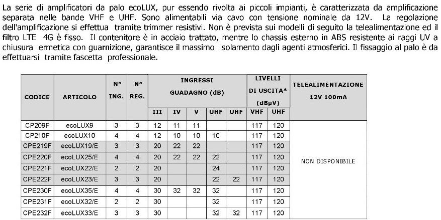 La serie di amplificatori da palo ecoLUX, pur essendo dedicata ai piccoli impianti, è caratterizzata da amplificazione separata nelle bande VHF e UHF.